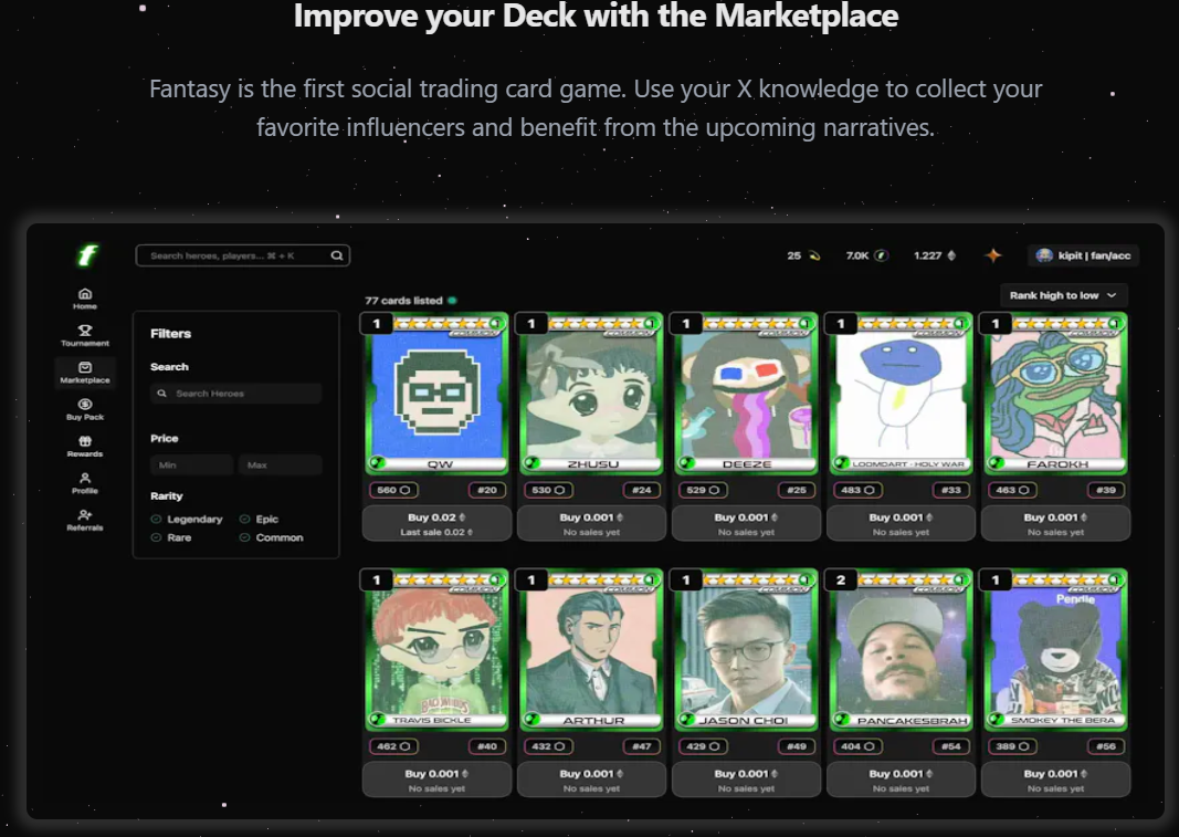 Fantasy.top initially gained attention in the Web3 gaming and social trading space by offering a platform where users could buy and trade digital trading cards tied to crypto influencers and social media personalities.
